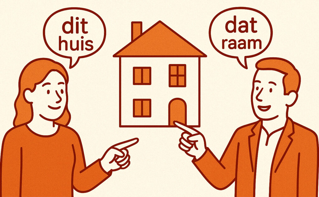 - Dichtbij: dit (het-woord), deze (de-woord/meervoud)