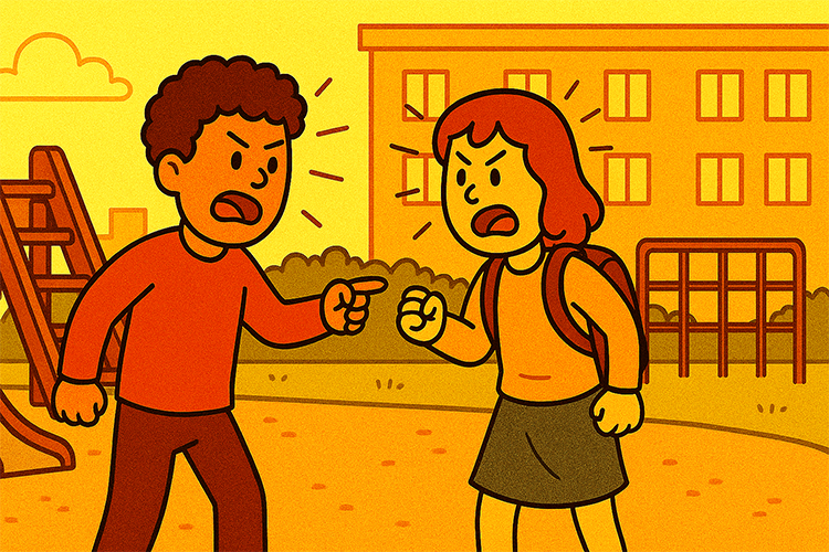 - “Ja, ze hadden een beetje ruzie op het plein.”